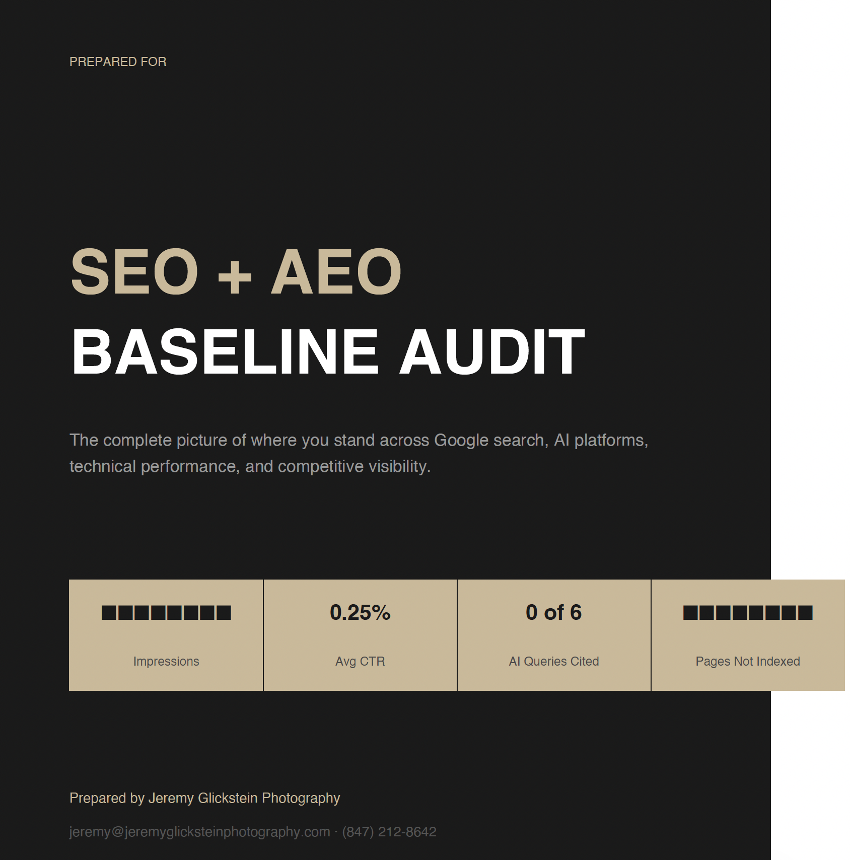 I run two photography businesses in Chicago, Jeremy Glickstein Photography and The Proposal Studios. For the past year I have been quietly going deep on AI search, not playing with it, actually building with it. Testing, failing, refining, winning.